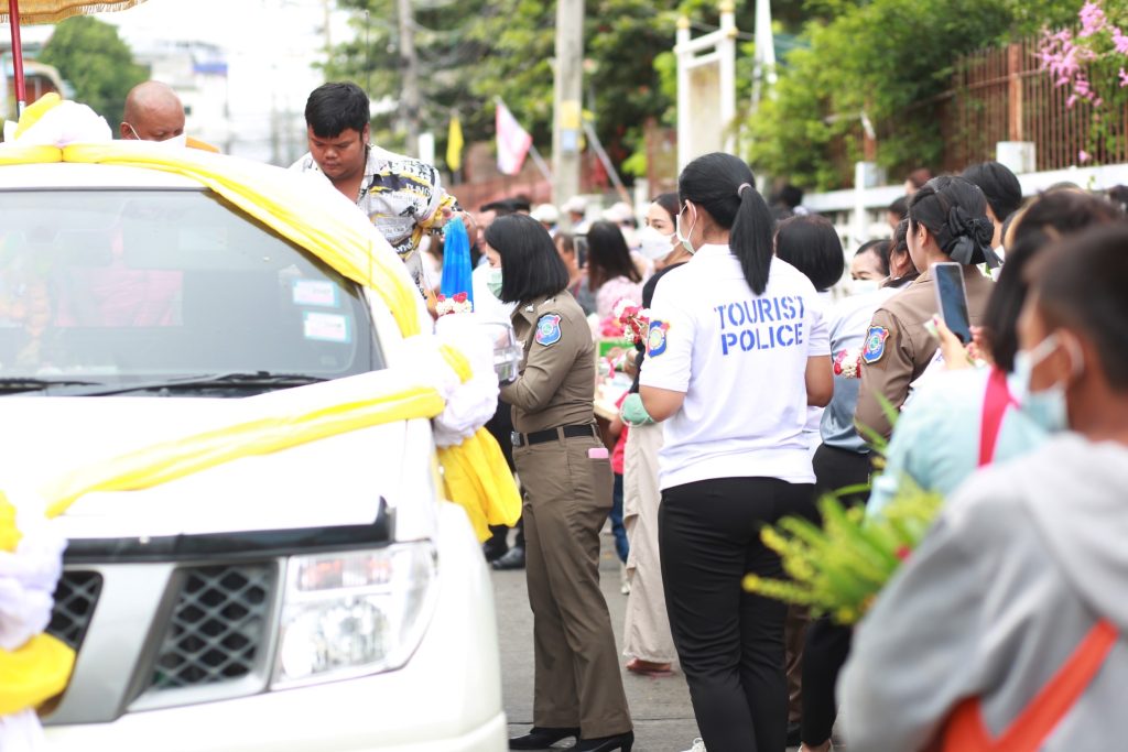 พ.ต.ท.ปฎิญญา เนียมหอม สว.ส.ทท.2 กก.3 บก.ทท.2 มอบหมายให้ ร.ต.ท.สมชาย ชื่นชาติ ร้อยเวรประจำวันฯ พร้อมสายตรวจ, TO และอาสาสมัครตำรวจท่องเที่ยวนครสวรรค์ได้เข้าร่วมกิจกรรม งานบุญประเพณีออกพรรษาตักบาตรเทโวโรหณะวิถีไทยวิถีพุทธ ณ วัดวรนาถบรรพต (วัดเขากบ)