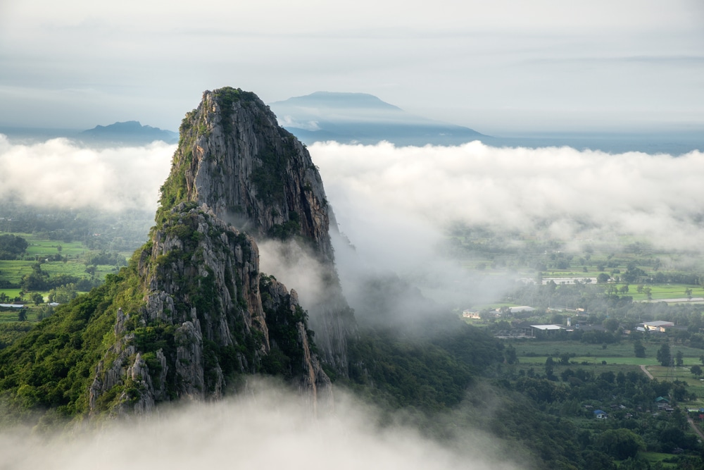 Close,Up,View,Of,Khao,Nor,With,Fog,In,The